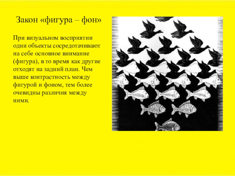 основное внимание (фигура), в то время как другие отходят на задний план. Чем выше контрастность между фигурой и фоном, тем более очевидны различия между ними.