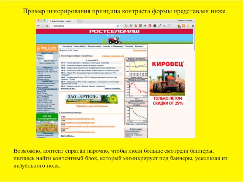 Слайд 16 Пример игнорирования принципа контраста формы представлен ниже.