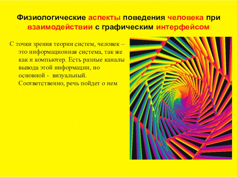 Слайд 11Физиологические аспекты поведения человека при взаимодействии с графическим интерфейсом