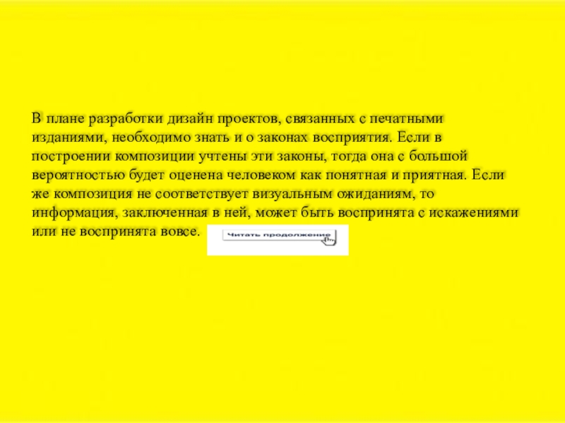 и о законах восприятия. Если в построении композиции учтены эти законы, тогда она с большой вероятностью будет оценена человеком как понятная и приятная. Если же композиция не соответствует визуальным ожиданиям, то информация, заключенная в ней, может быть воспринята с искажениями или не воспринята вовсе.