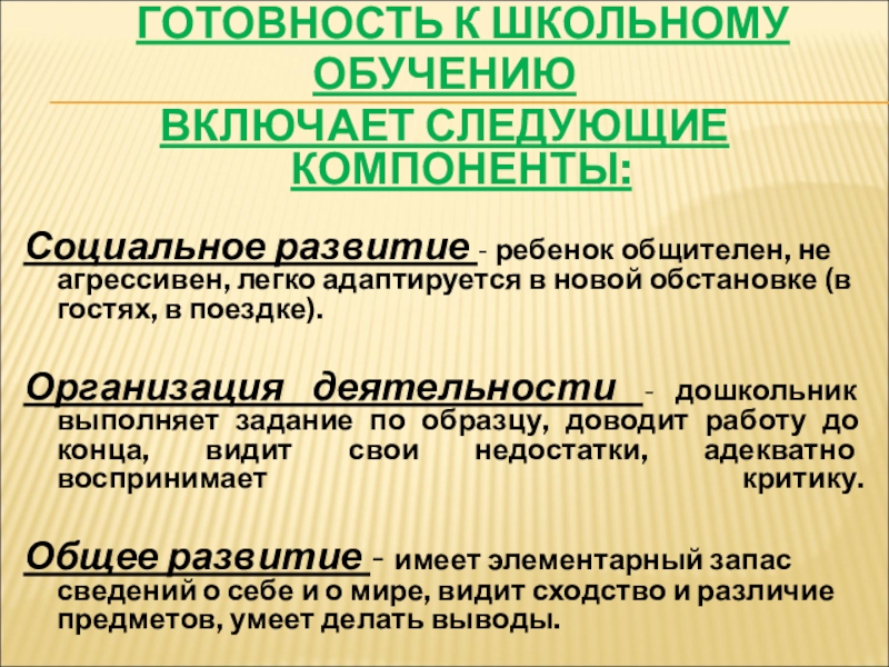 Слайд 6 ГОТОВНОСТЬ К ШКОЛЬНОМУ