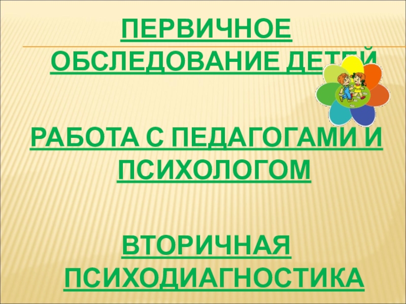 Слайд 14ПЕРВИЧНОЕ ОБСЛЕДОВАНИЕ ДЕТЕЙ