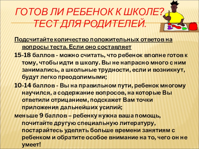 Слайд 12ГОТОВ ЛИ РЕБЕНОК К ШКОЛЕ?