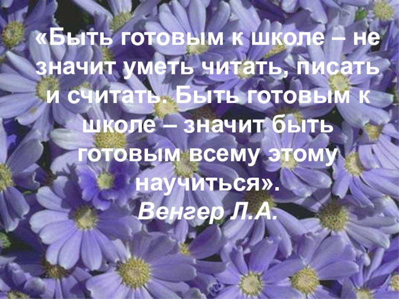 считать. Быть готовым к школе – значит быть готовым всему этому научиться».
