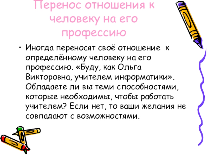 Слайд 9Перенос отношения к человеку на его профессию
