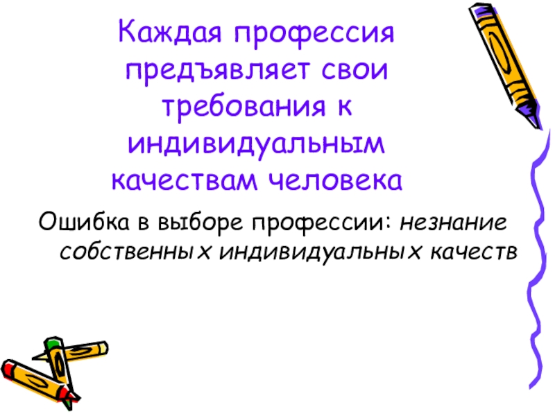 Каждая профессия предъявляет свои требования к индивидуальным качествам человека Ошибка в выборе профессии: незнание собственных индивидуальных качеств