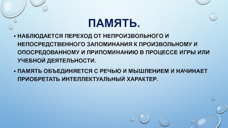Наблюдается переход от непроизвольного и непосредственного запоминания к произвольному и