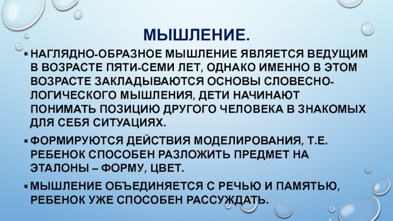 Наглядно-образное мышление является ведущим в возрасте пяти-семи лет, однако именно в