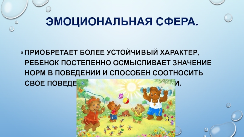 поведении и способен соотносить свое поведение и эмоции с нормами.