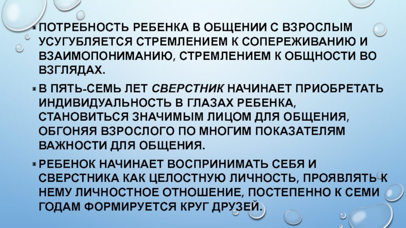Слайд 5Потребность ребенка в общении с взрослым усугубляется стремлением к сопереживанию и