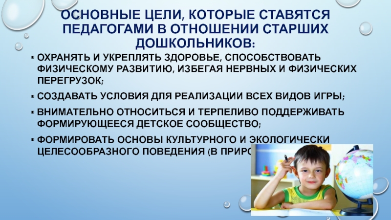 Основные цели, которые ставятся педагогами в отношении старших дошкольников: