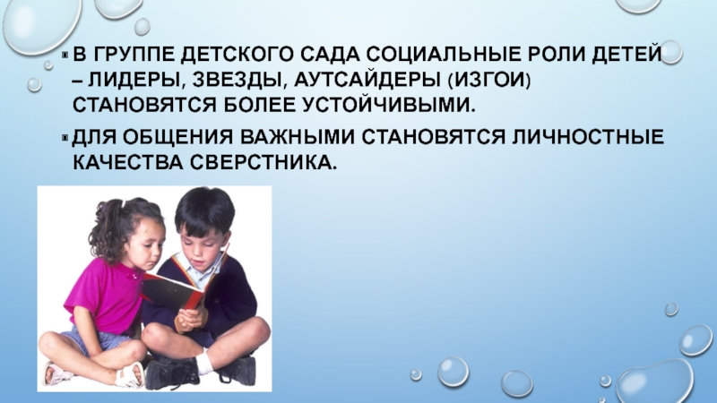 Слайд 6В группе детского сада социальные роли детей – лидеры, звезды, аутсайдеры