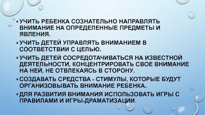 Слайд 25Учить ребенка сознательно направлять внимание на определенные предметы и явления.