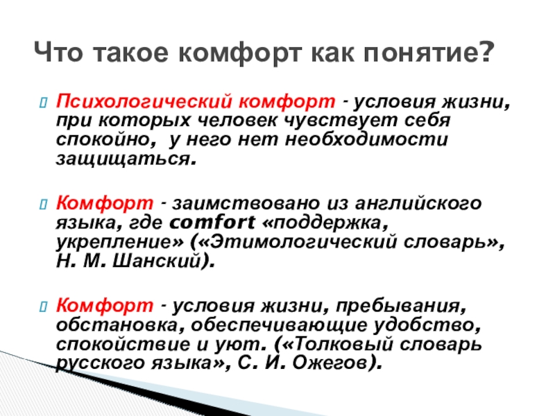 Что такое комфорт как понятие?