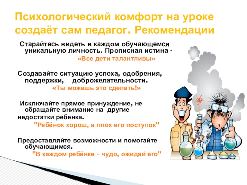 Психологический комфорт на уроке создаёт сам педагог. Рекомендации