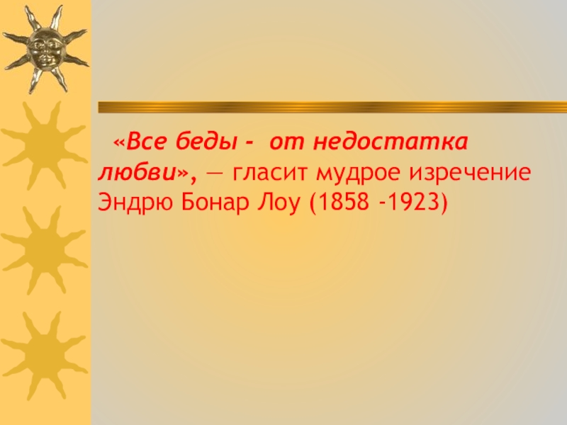 «Все беды - от недостатка любви», — гласит мудрое изречение Эндрю Бонар Лоу