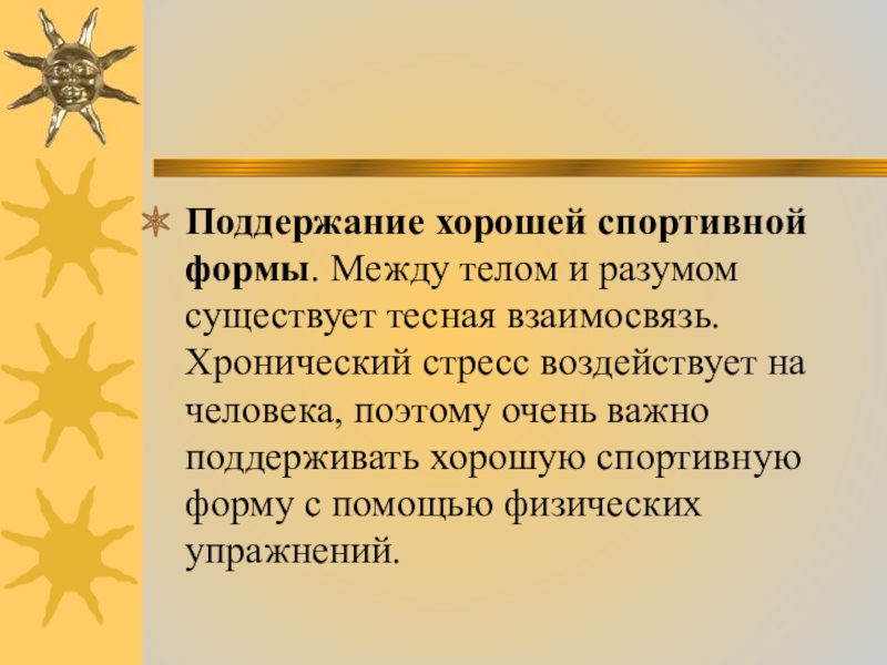Поддержание хорошей спортивной формы. Между телом и разумом существует тесная взаимосвязь.