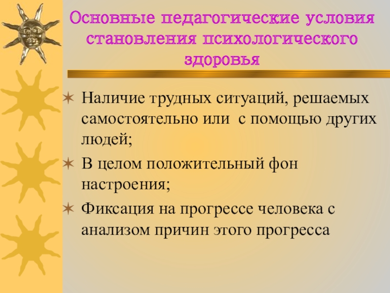 Слайд 8Основные педагогические условия становления психологического здоровья