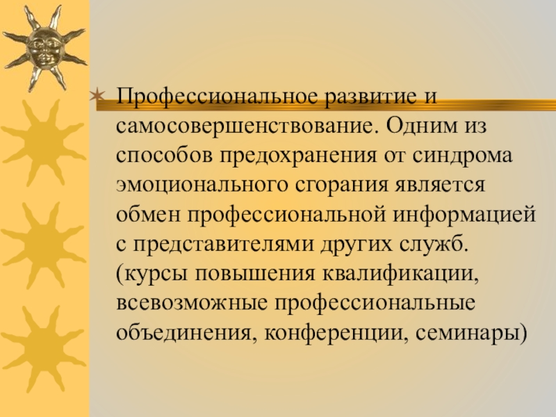 Профессиональное развитие и самосовершенствование. Одним из способов предохранения от синдрома эмоционального
