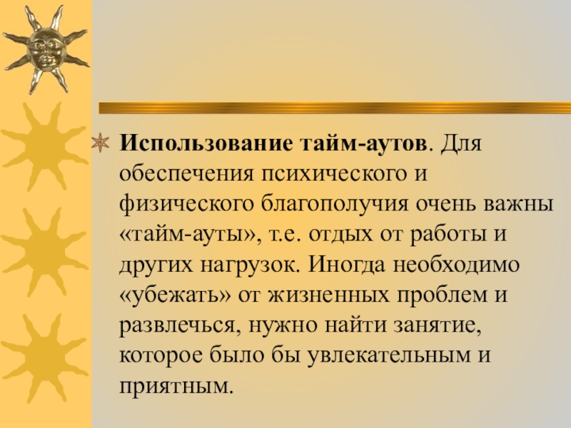 Использование тайм-аутов. Для обеспечения психического и физического благополучия очень важны «тайм-ауты»,