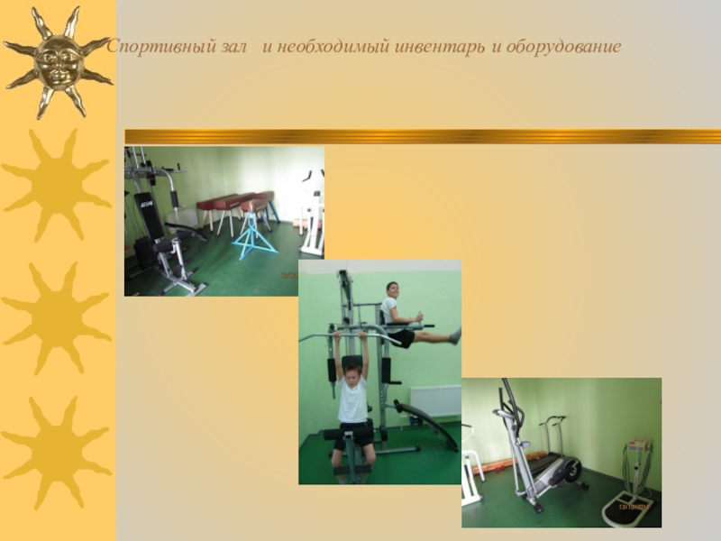 Слайд 20Спортивный зал и необходимый инвентарь и оборудование