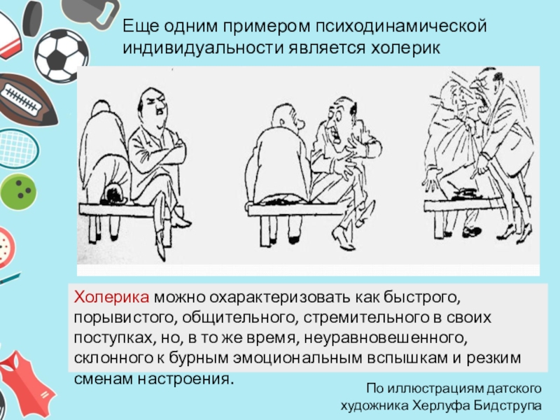 Слайд 26Холерика можно охарактеризовать как быстрого, порывистого, общительного, стремительного в своих поступках,