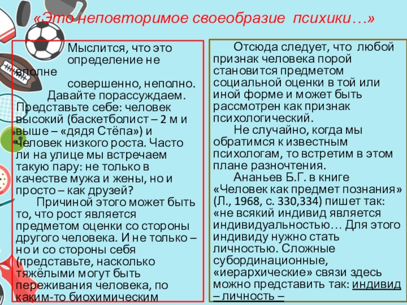 И вот тут надо сказать, что в подходе к определению индивидуальности среди психологов нет единства, настолько сложным является это понятие.