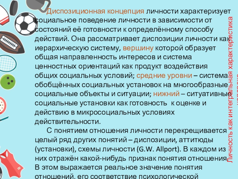 Слайд 39Диспозиционная концепция личности характеризует социальное поведение личности в зависимости от состояний
