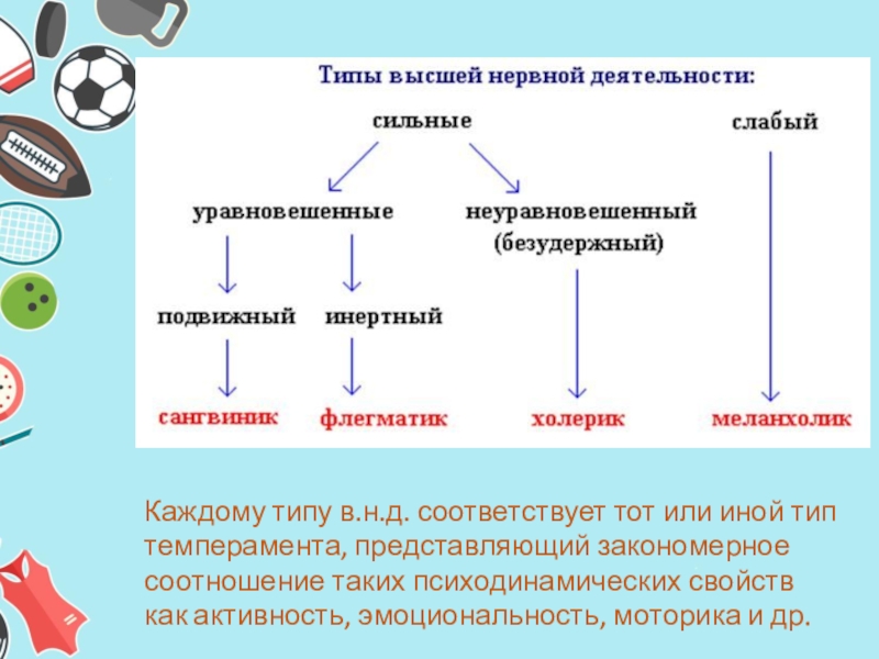 Слайд 24Каждому типу в.н.д. соответствует тот или иной тип темперамента, представляющий закономерное
