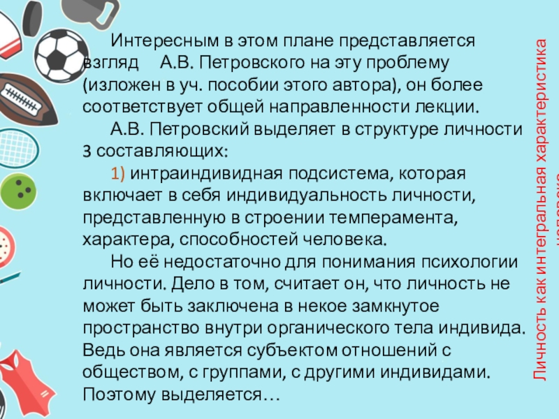 А.В. Петровский выделяет в структуре личности 3 составляющих: