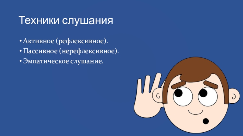 Техники слушания Активное (рефлексивное). Пассивное (нерефлексивное). Эмпатическое слушание.