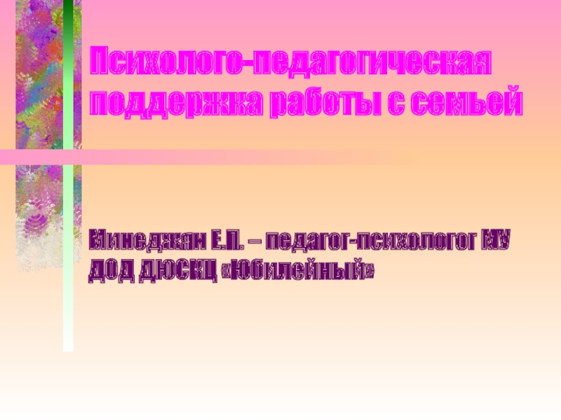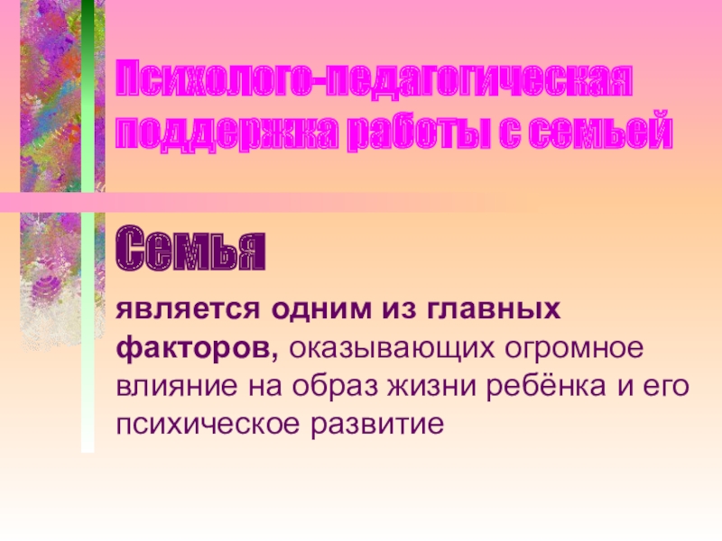 Слайд 2Психолого-педагогическая поддержка работы с семьей