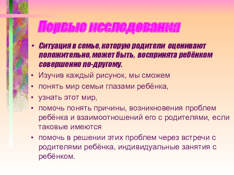 помочь понять причины, возникновения проблем ребёнка и взаимоотношений его с родителями, если таковые имеются