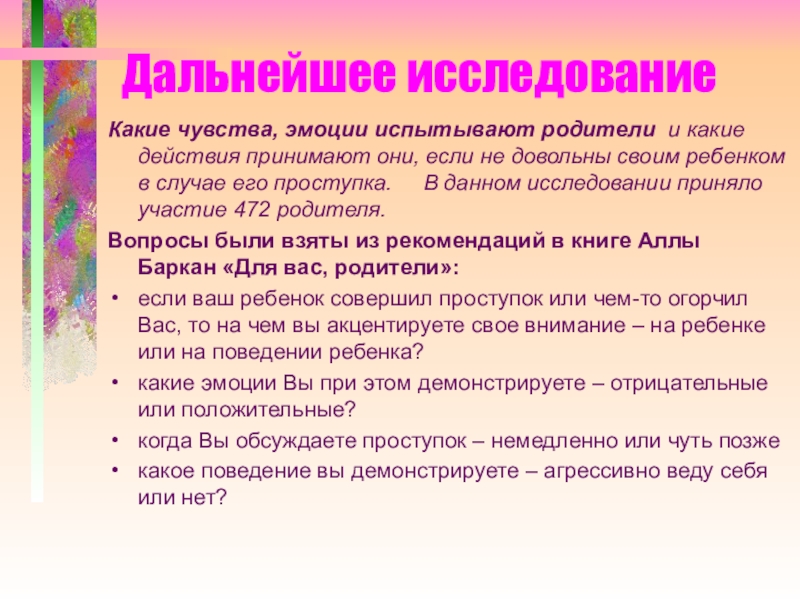 Вопросы были взяты из рекомендаций в книге Аллы Баркан «Для вас, родители»: