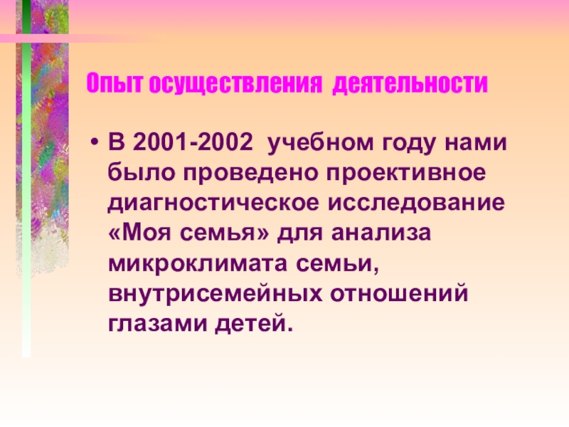 исследование «Моя семья» для анализа микроклимата семьи, внутрисемейных отношений глазами детей.