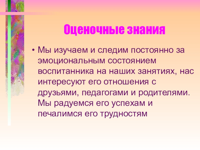 на наших занятиях, нас интересуют его отношения с друзьями, педагогами и родителями. Мы радуемся его успехам и печалимся его трудностям