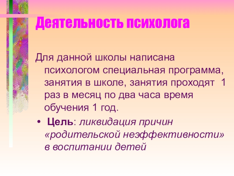Для данной школы написана психологом специальная программа, занятия в школе,