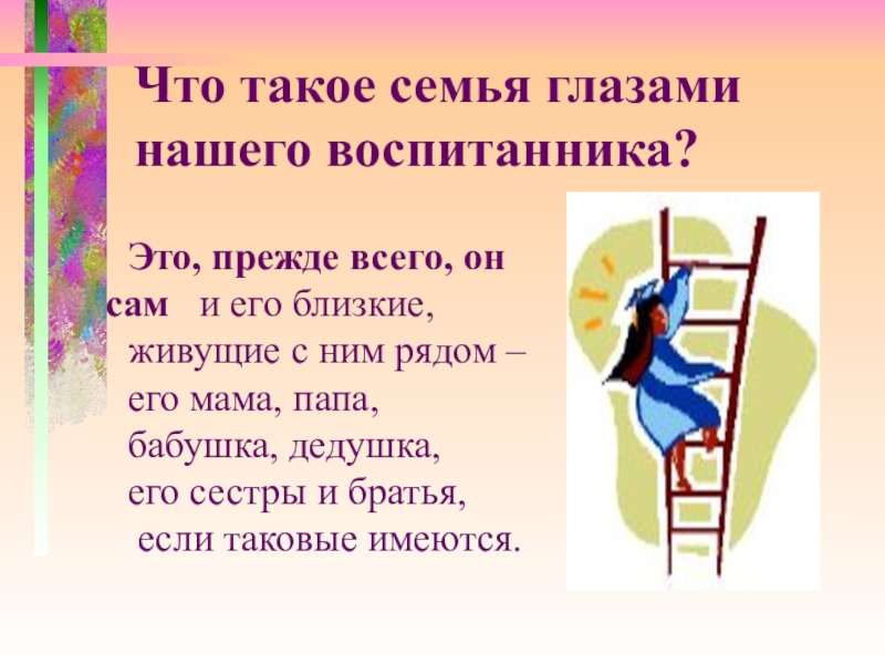 Слайд 3Что такое семья глазами нашего воспитанника?