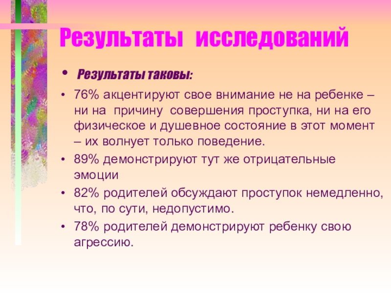 если не довольны своим ребенком в случае его проступка. В данном исследовании приняло участие 472 родителя.