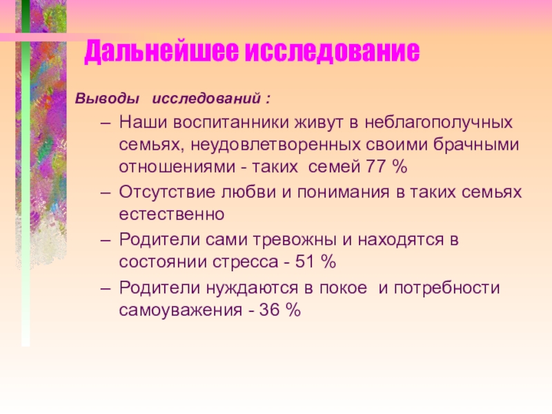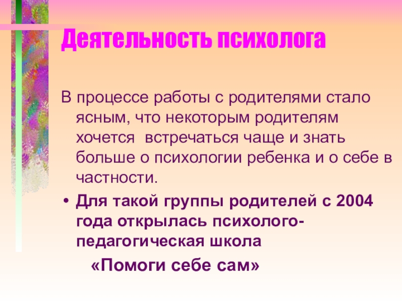 В процессе работы с родителями стало ясным, что некоторым родителям