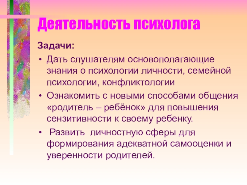 Дать слушателям основополагающие знания о психологии личности, семейной психологии, конфликтологии
