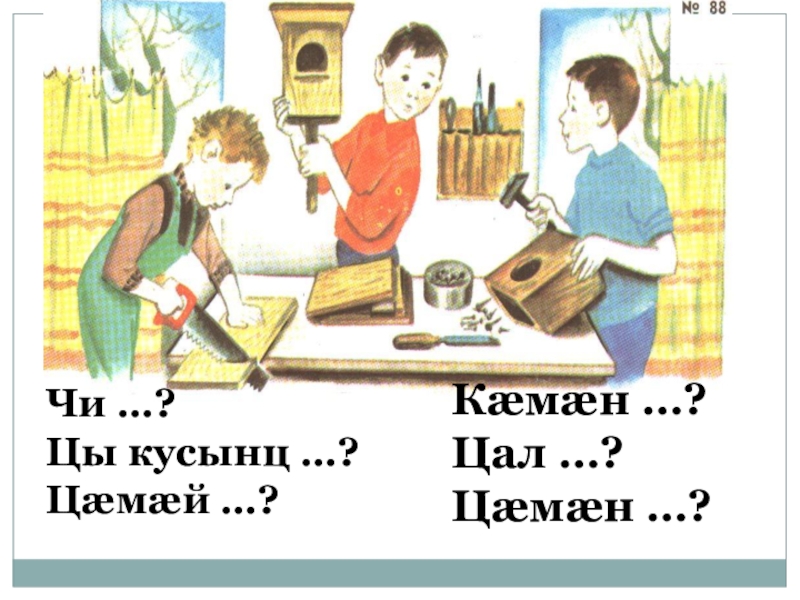 Чи …?Цы кусынц …?Цæмæй …?Кæмæн …?Цал …?Цæмæн …?