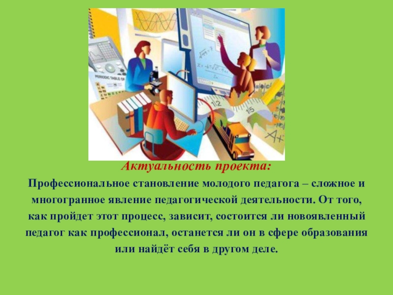 Актуальность проекта: Профессиональное становление молодого педагога – сложное и