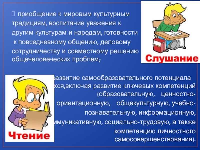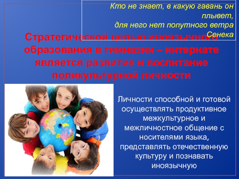 Личности способной и готовой осуществлять продуктивное межкультурное и межличностное общение с носителями языка, представлять отечественную культуру и познавать иноязычную