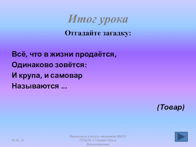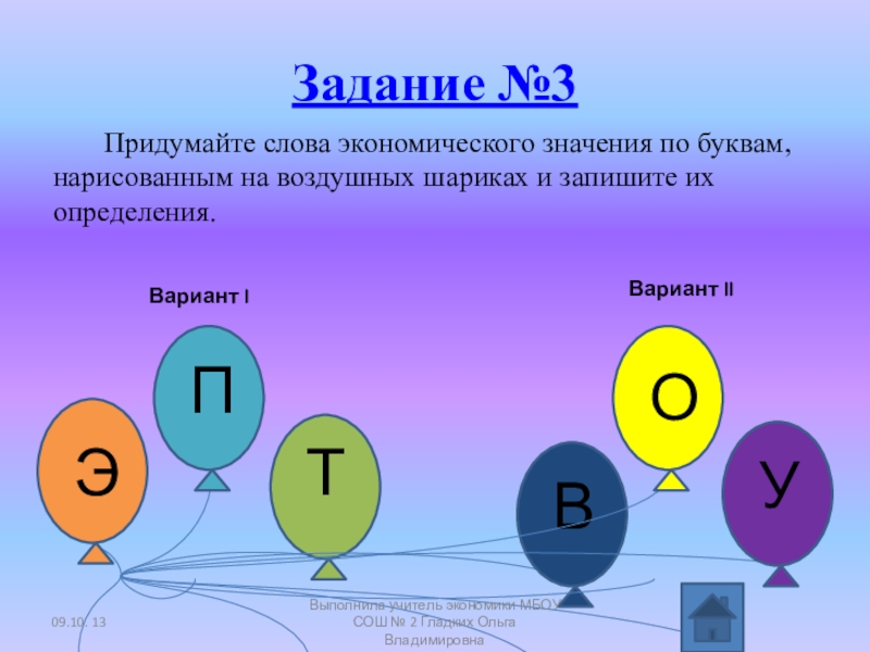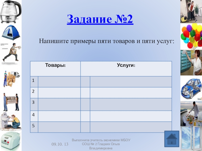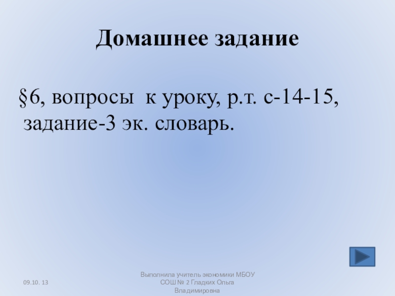 Выполнила учитель экономики МБОУ СОШ № 2 Гладких Ольга Владимировна
