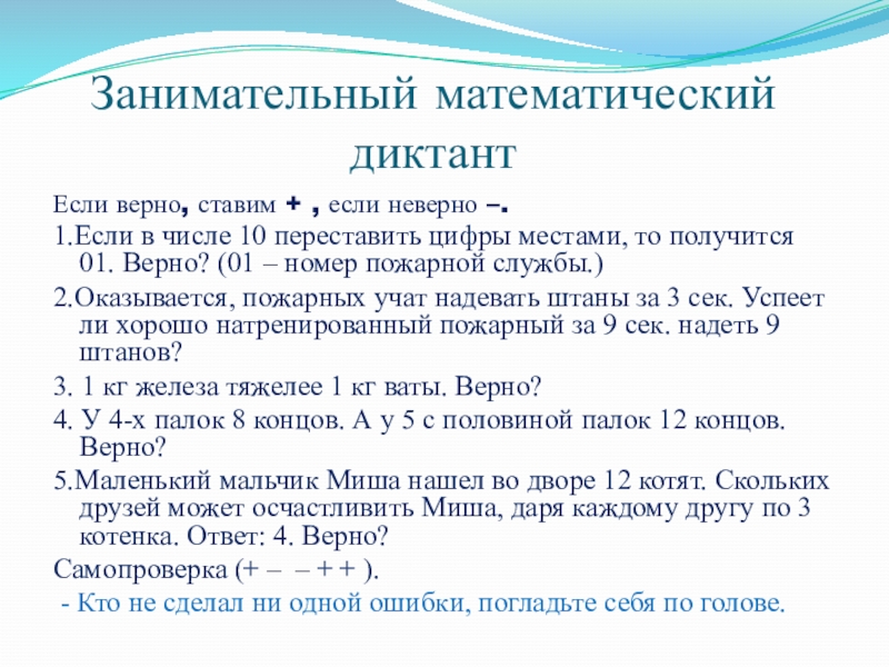 - Кто не сделал ни одной ошибки, погладьте себя по голове.