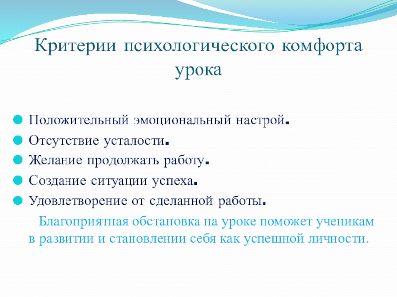 Благоприятная обстановка на уроке поможет ученикам в развитии и становлении себя как успешной личности.