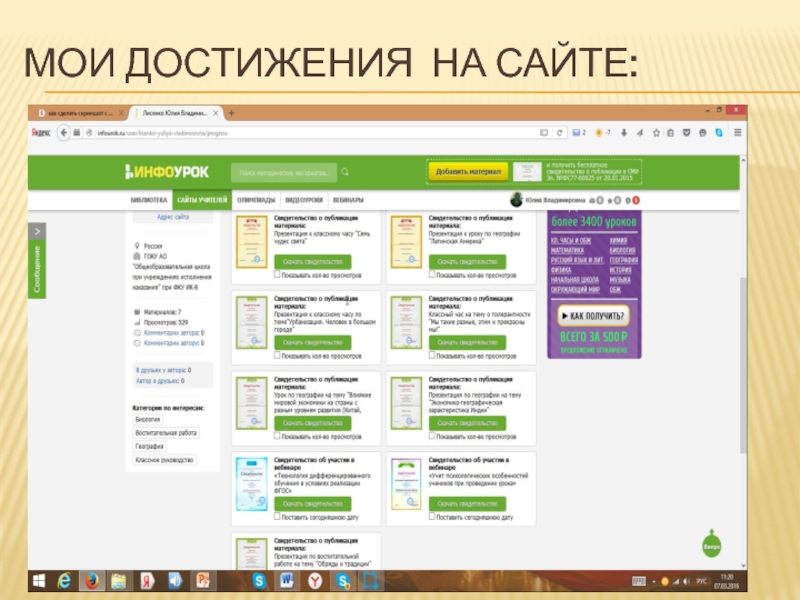 автоматическое продвижение своих методических разработок в педагогическом интернет-сообществе (на продвижение "работает" авторитет крупного портала);