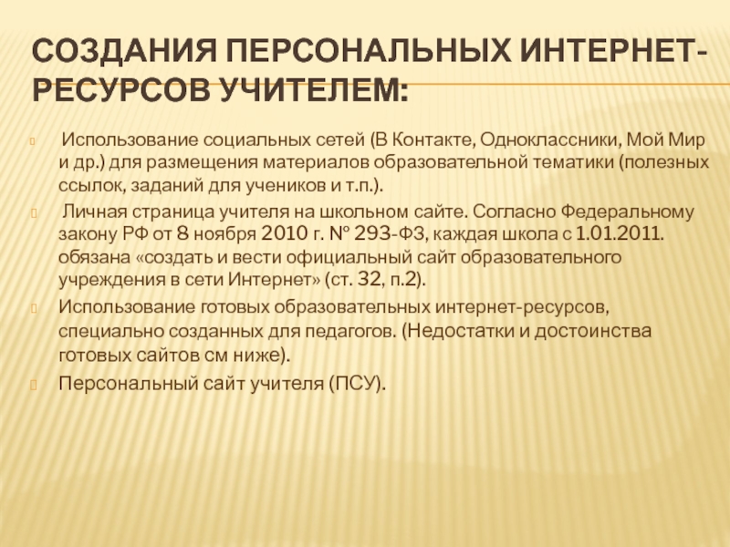 Сайты, создаваемые с помощью таких ресурсов, фактически являются их директориями, разделами, имеют однотипный шаблон страниц и много других ограничений (например, они, как правило, хуже «откликаются» на поиск по ФИО учителя, и почти всегда не имеют собственной статистики).