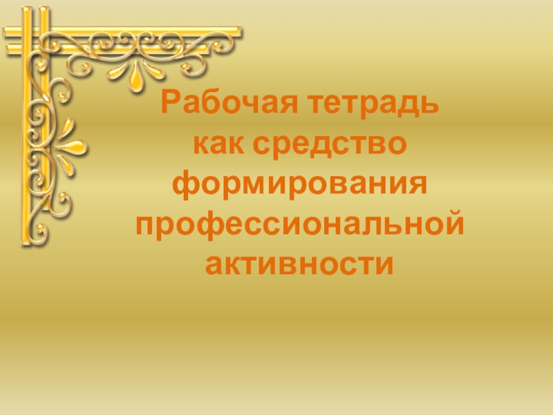 Презентация, доклад на тему Рабочая тетрадь как средство формирования профессиональной активности